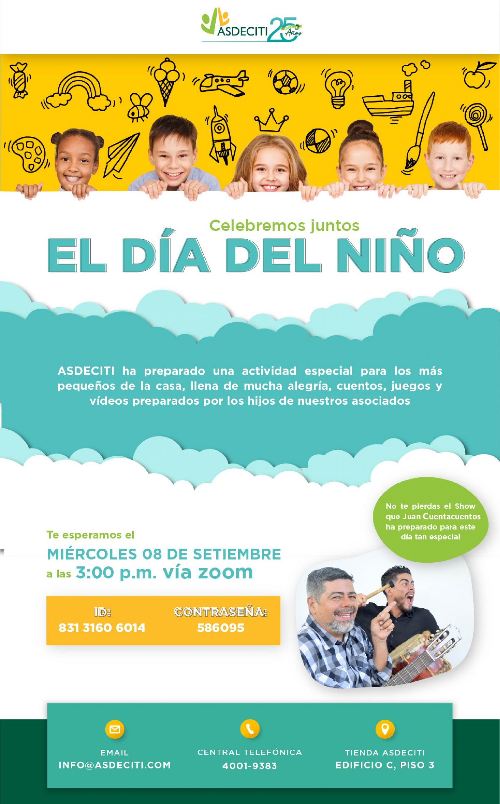 Envíanos un video para participar en la actividad especial del Día del Niño que se realizará el 8 de septiembre a las 3:00 p.m, tienes tiempo de anotar a tus hijos hasta el 31 de agosto 2021.