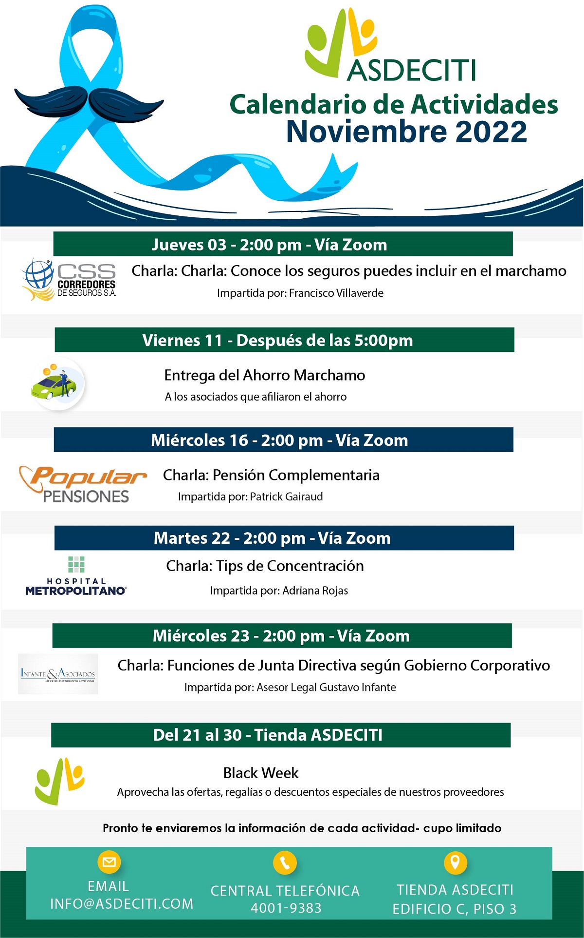 – El 29 y 30 de noviembre ASDECITI llevará a la cafetería a su proveedor externo Chayfer para puedas adquirir el regalo y lo pagues en cuotas, por medio de rebajo de planilla.